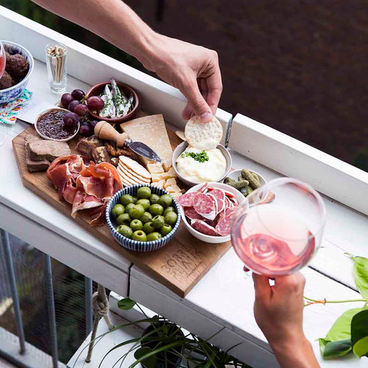 Posizionando il Balkonbar al centro del corrimano, sporgerà di 15 cm su ciascuno dei lati. Il bordo in rilievo proteggerà gli oggetti da eventuali cadute. È comunque necessario fare attenzione!